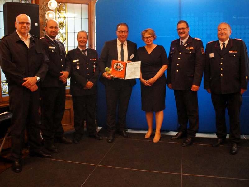 Feuerwehrministerin Behrens freute sich in ihrer Ansprache darüber, „dass die Angehörigen der Feuerwehren in Niedersachsen überwiegend ehrenamtlich tätig sind und dieses System nur weiterhin bestehen kann, wenn sich zukünftig Firmen, wie die heute ausgezeichneten, das Feuerwehrwesen unterstützen. Bei Einsätzen bekommen die Einsatzkräfte Beruf, Familie und Ehrenamt in Einklang, welches aber bestimmt nicht immer einfach sei und überall auf Verständnis stoße. Das Brandschutzgesetz gibt ihnen zwar das Recht ihren Arbeitsplatz zu verlassen um an Einsätzen teilzunehmen - das Gesetz nützt aber nicht viel, wenn die Unternehmen und Arbeitgeber nicht dahinterstehen und ihre Mitarbeiterinnen und Mitarbeiter für den Einsatz- und Ausbildungsdienst freistellen!“